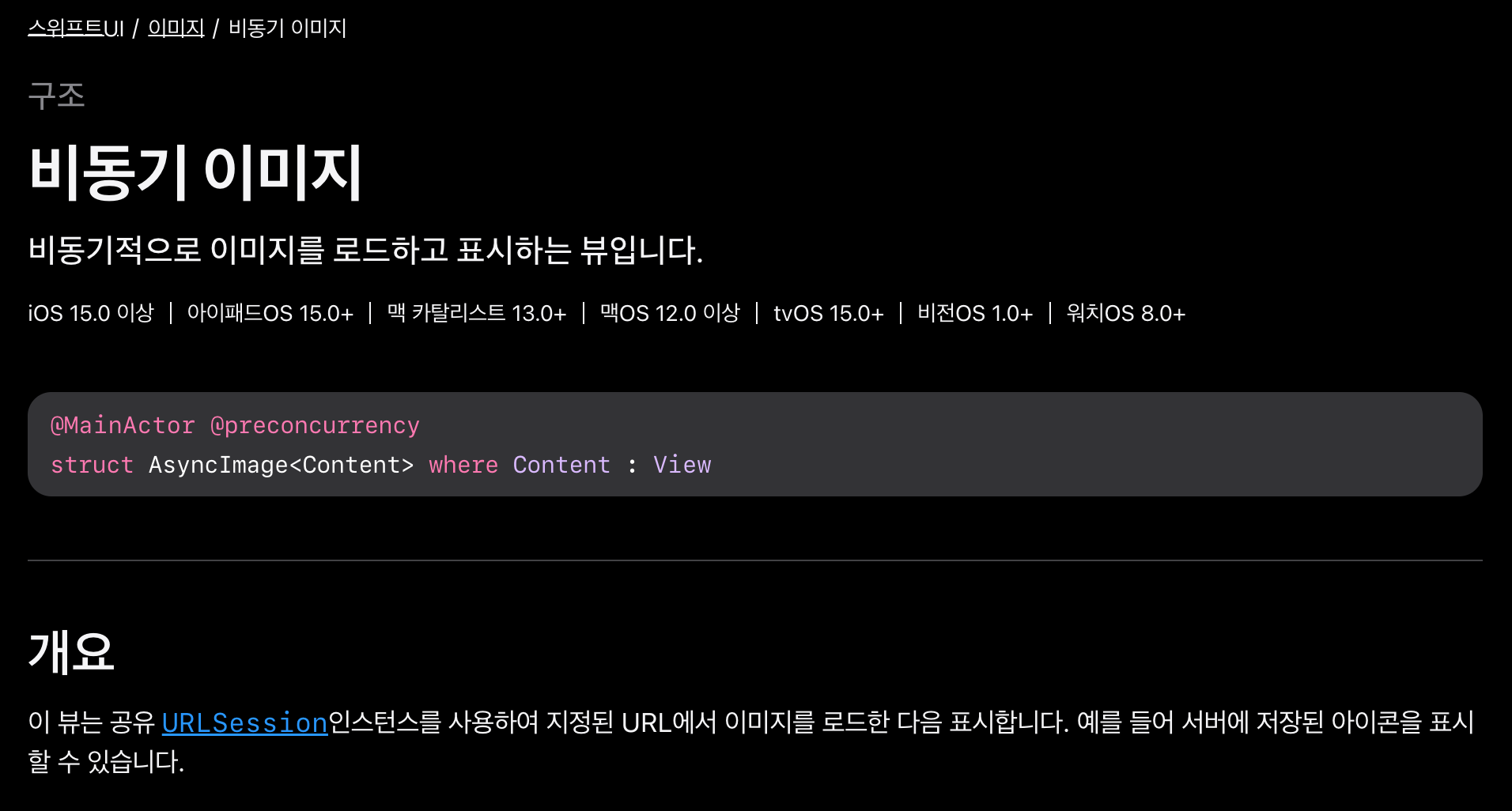 AsyncImage는 URLSession.shared 를 사용하여 URL 이미지를 비동기로 로드하고 보여주는 View 이다.